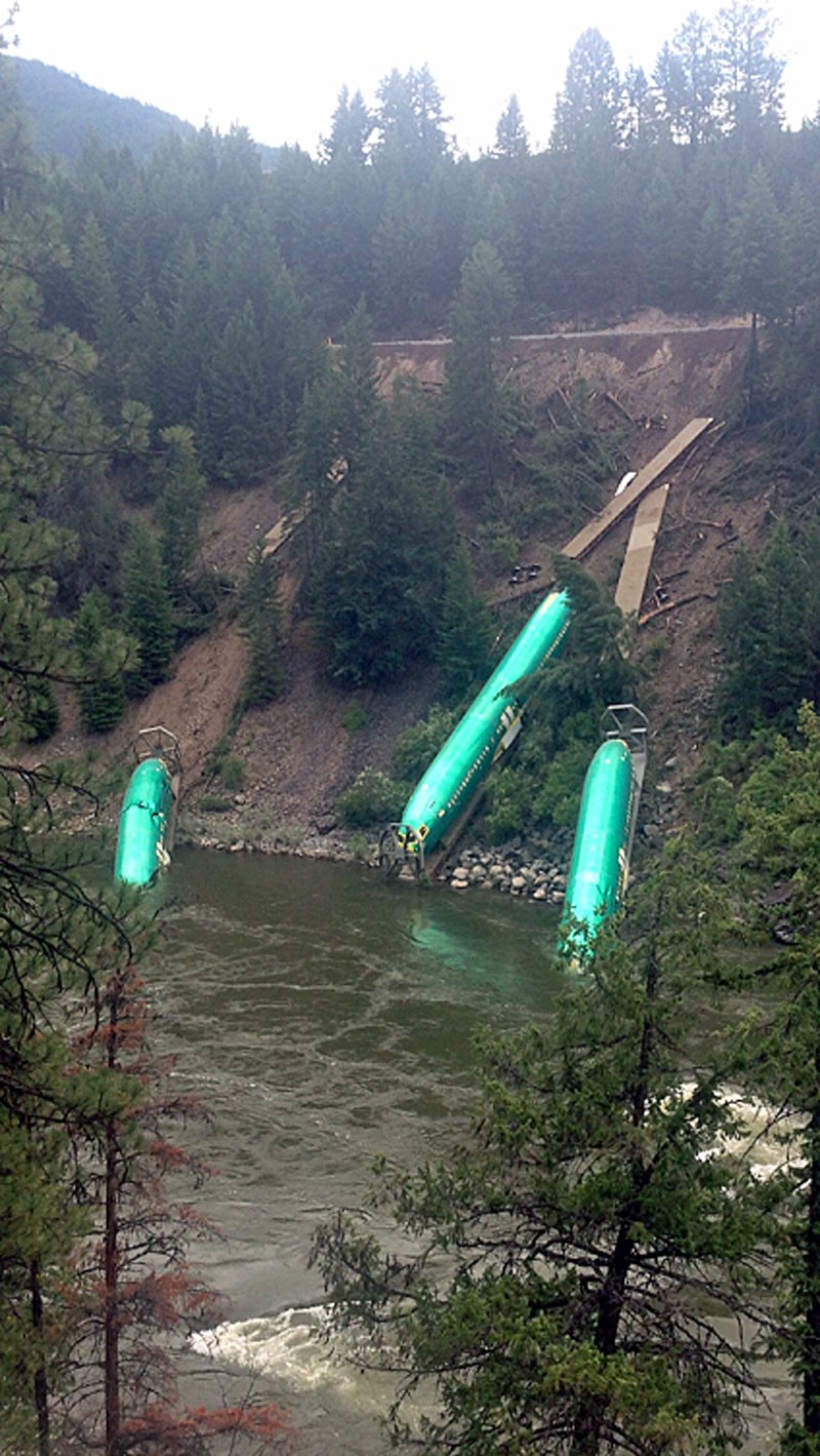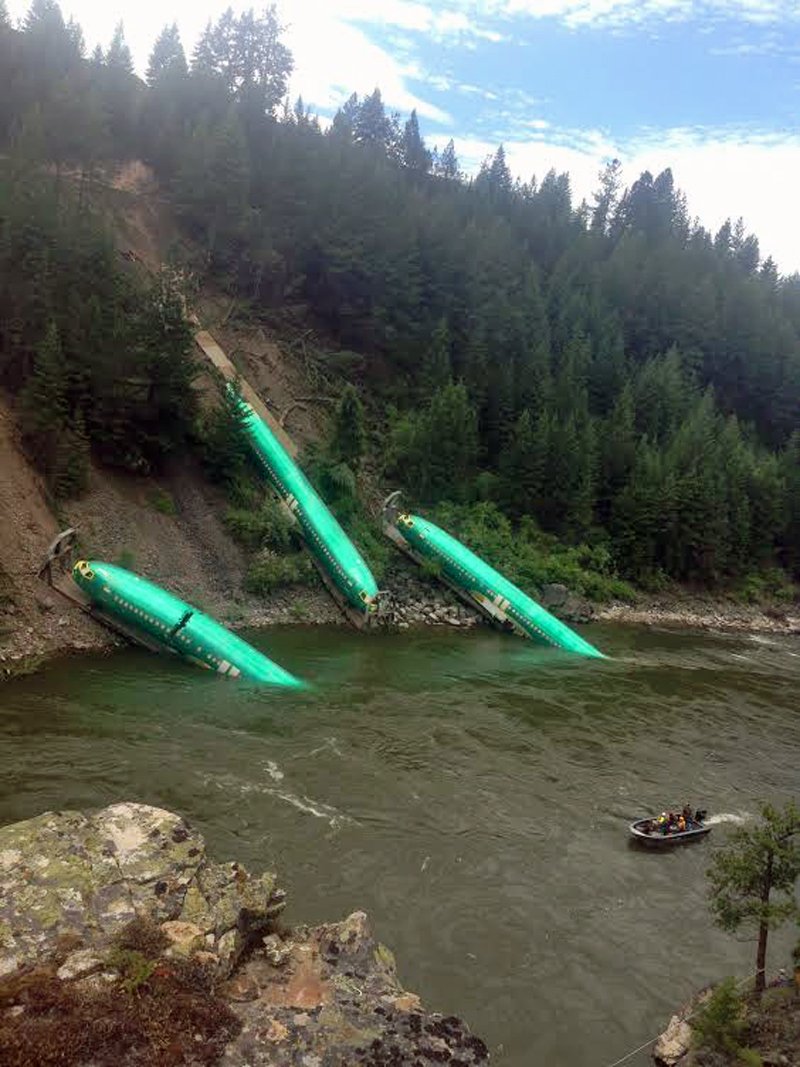 Τρεις άτρακτοι αεροπλάνων τύπου Boeing 737 βρέθηκαν μέσα σε λίγα λεπτά στην κοίτη ποταμού στη δυτική Μοντάνα των ΗΠΑ. Ολα ξεκίνησαν μετά από τον εκτροχιασμό του τρένου που μετέφερε έξι ατράκτους αεροπλάνων. Το αποτέλεσμα ήταν οι μισές να βρεθούν σε μία κοιλάδα, όπου το έργο της ανασυρσης τους είναι σχετικά εύκολο, αλλά οι υπόλοιπες τρεις έπεσαν μέσα στον ποταμό με αποτέλεσμα τα συνεργεία που έχουν αναλάβει το έργο... απεγκλωβισμού να μην ξέρουν τι να κάνουν.