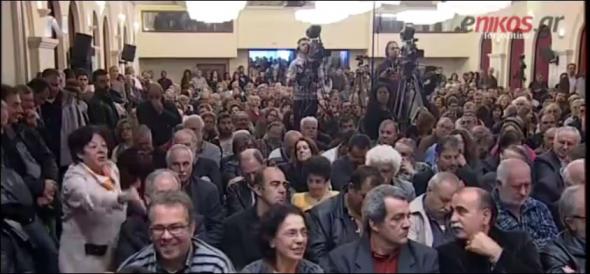 Αμηχανία προκλήθηκε κατά τη διάρκεια της ομιλίας του Προέδρου του ΣΥΡΙΖΑ, Αλέξη Τσίπρα, στην περιφερειακή σύσκεψη Κρήτης, από την παρέμβαση μίας γυναίκας, που τράβηξε τα βλέμματα όλων όσων παρακολουθούσαν την ομιλία του.