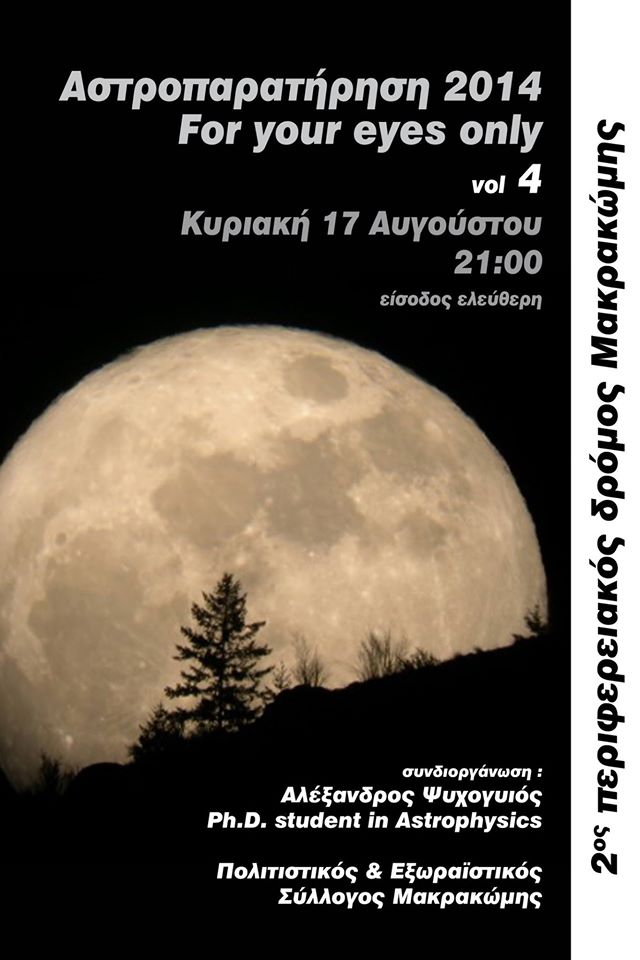 Μακρακώμη - Κυριακή 17 Αυγούστου 21:00 - Αστροπαρατήρηση 2014